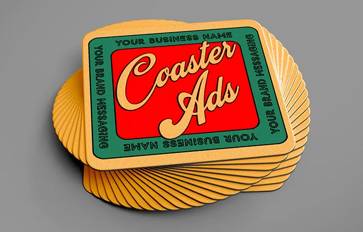 Coaster advertising involves printing your business ad on drink coasters and distributing them to high-traffic venues like bars and lounges.